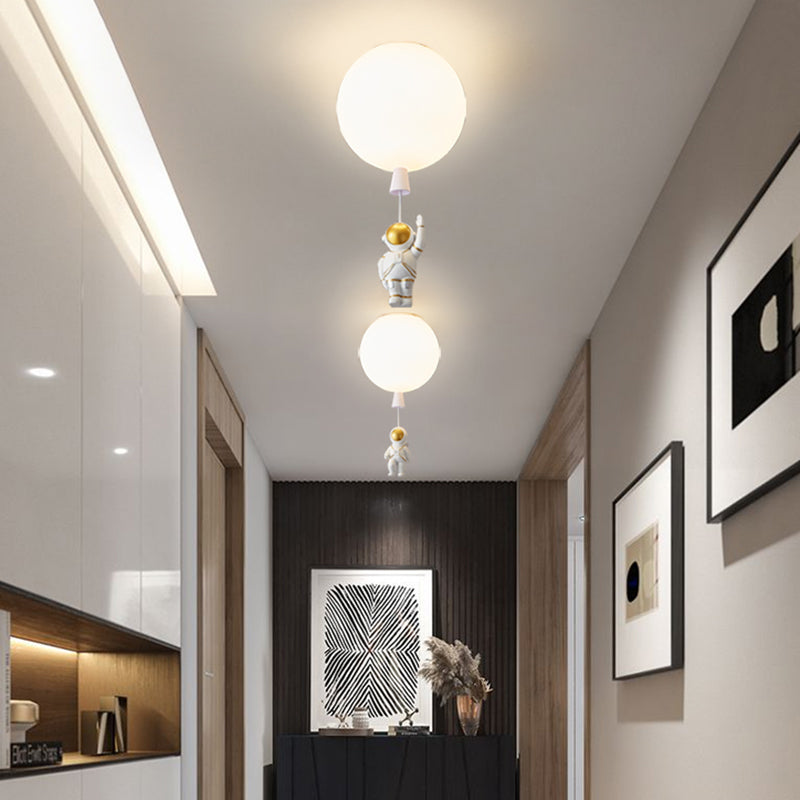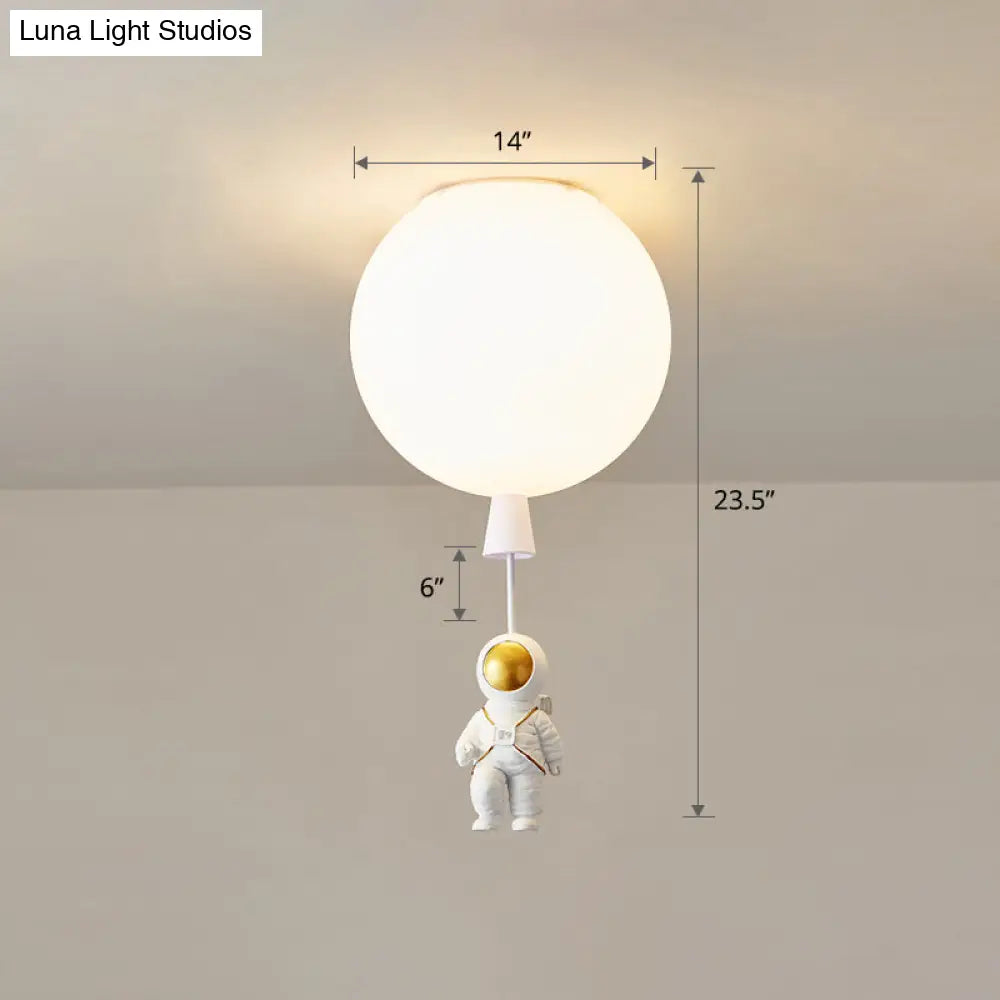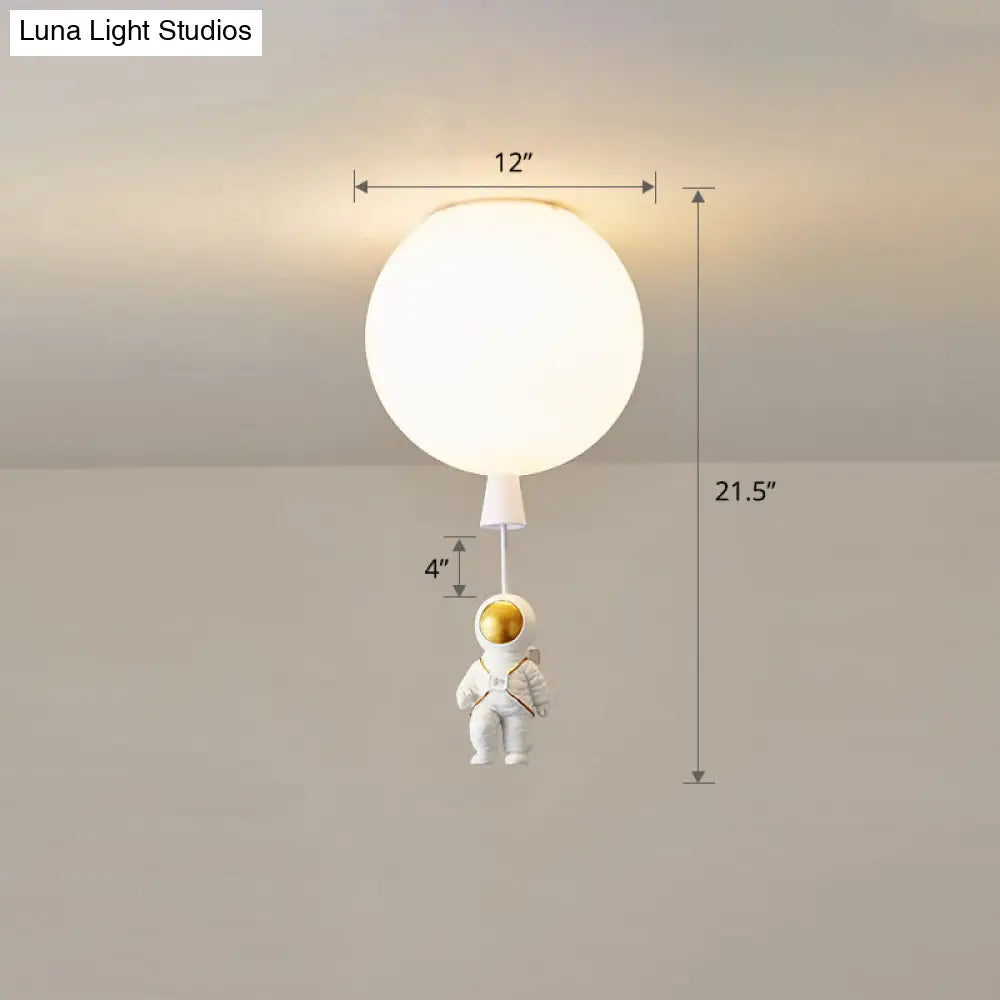 Deckenleuchte für Kinder mit Astronauten- und Ballonmotiv – 1-flammige Deckenleuchte in Weiß mit Acrylschirm - Weiß / 8" / Sitzung ist auf Lager und wird versandt, sobald es wieder verfügbar ist
