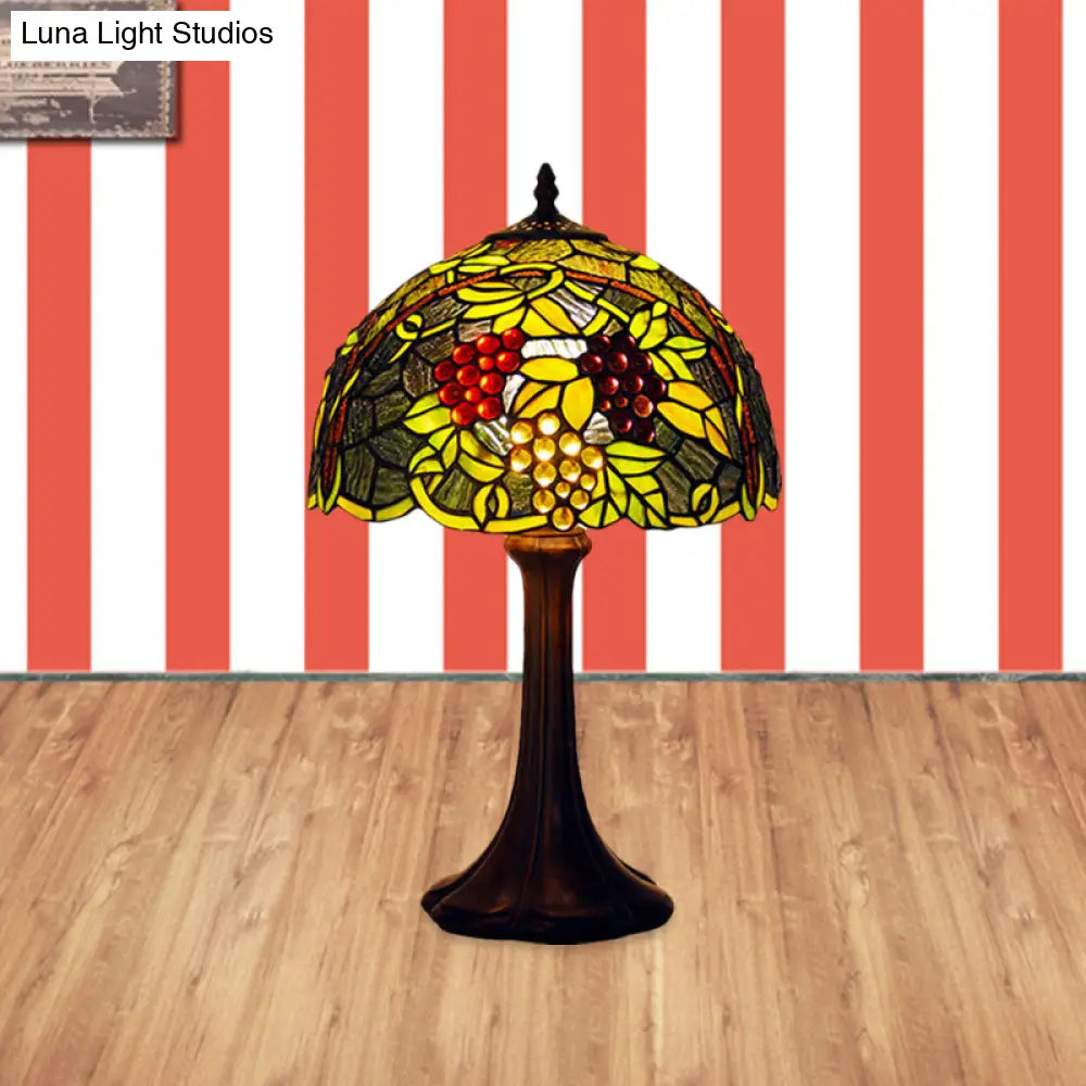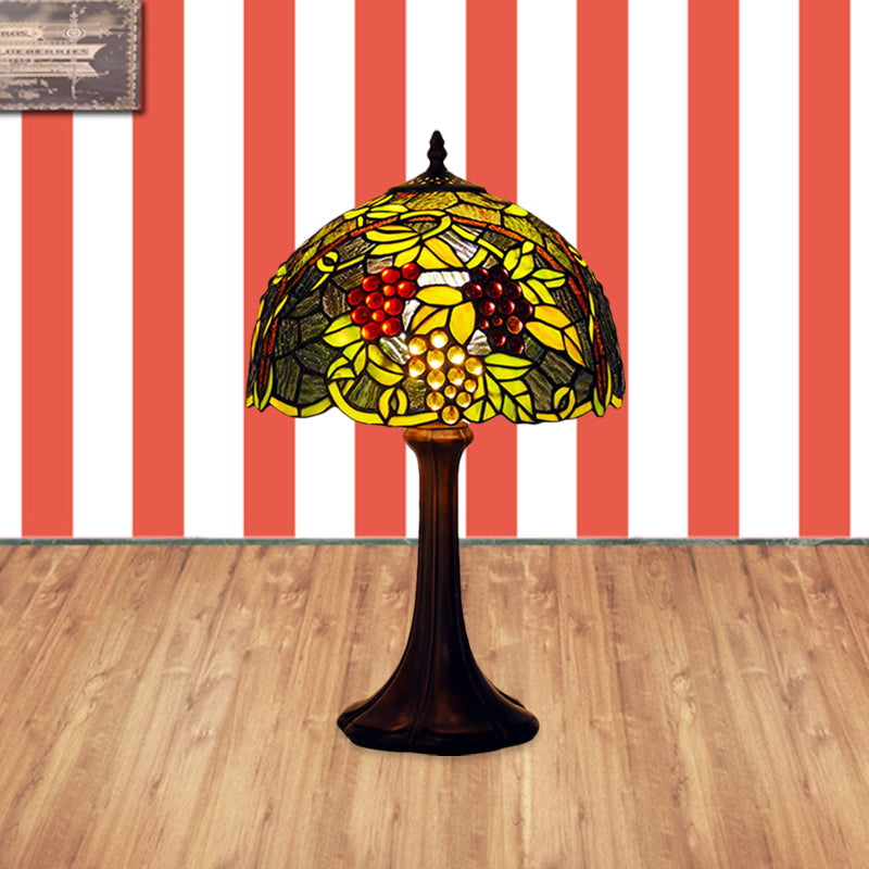 Émilie – Tiffany-Nachtlicht mit grüner Buntglasmalerei und Weinreben-Optik in Bronze-Optik