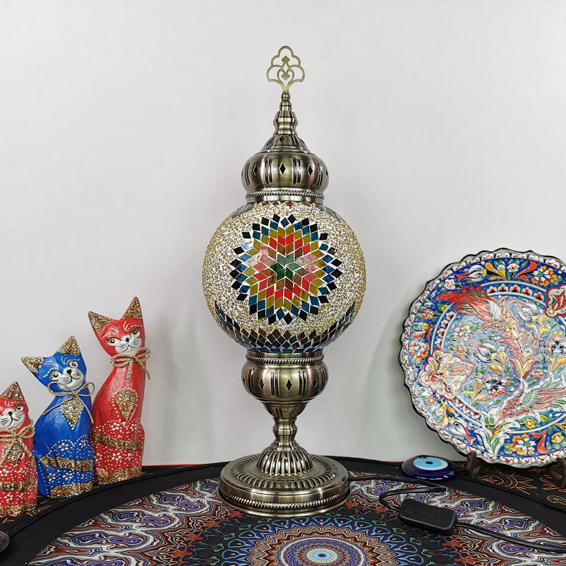 Ellie – Handgefertigte Vintage-Schreibtischlampe mit Glaskugel | 1 Kopf Nachttischlampe in