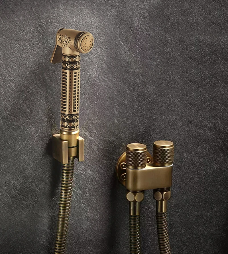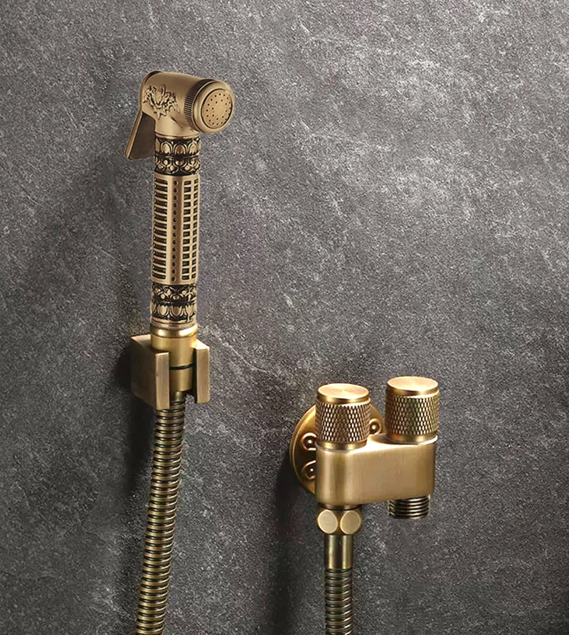 Antique Bronze Toilet Bidet Sprayer Set Brass Double Use Bidet Faucet Bathroom Sprayer Shower Bidet Faucet High Pressure Gun Set
