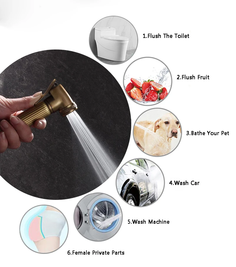 Ideal for homes, hotels, and commercial bathrooms, this double-use bidet sprayer kit combines classic appearance, durable construction, and powerful spray performance for a complete bathroom upgrade.