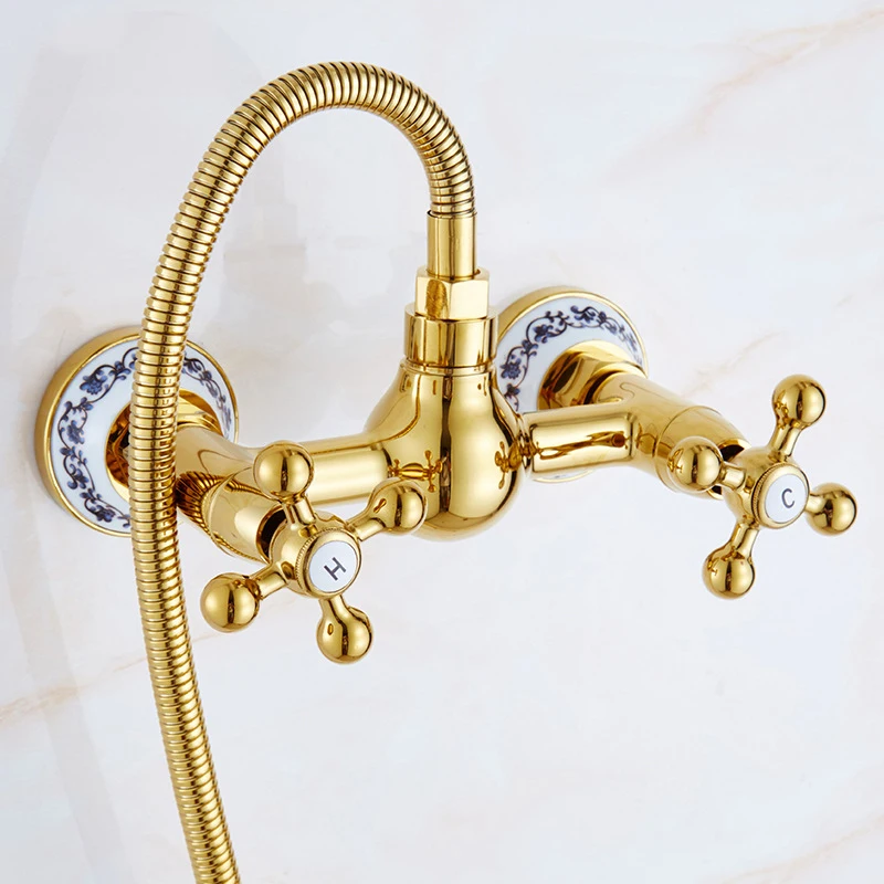 Bidet Faucets Gold Brass Bathroom Shower Blow-fed Spray Gun Nozzle Toilet Bidet Faucet Hot and Cold Water Taps Bathroom Hardware