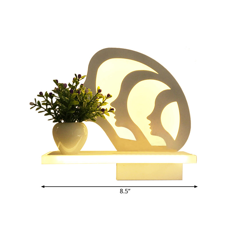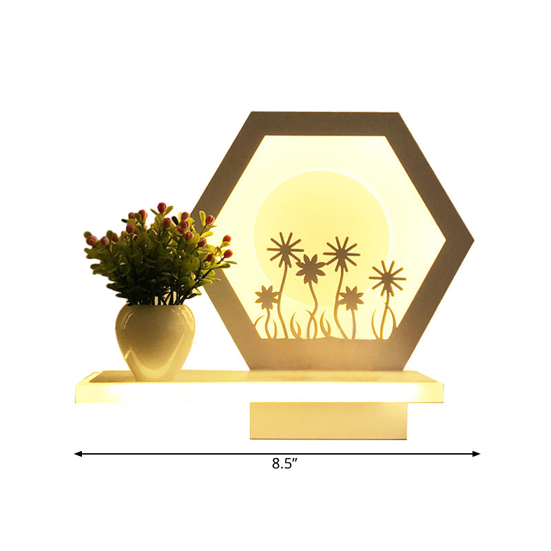 Modern Acrylic Wall Sconce With Shelf For Restaurant And Cafe - White Light / Flower