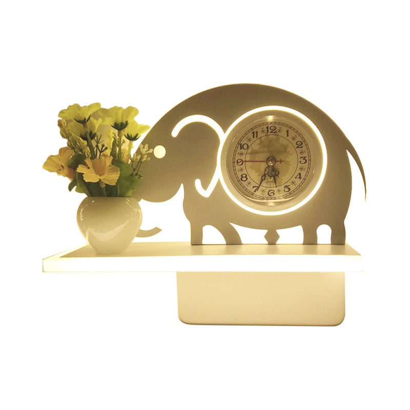 Modern Acrylic Wall Sconce With Shelf For Restaurant And Cafe - White Light / Elephant
