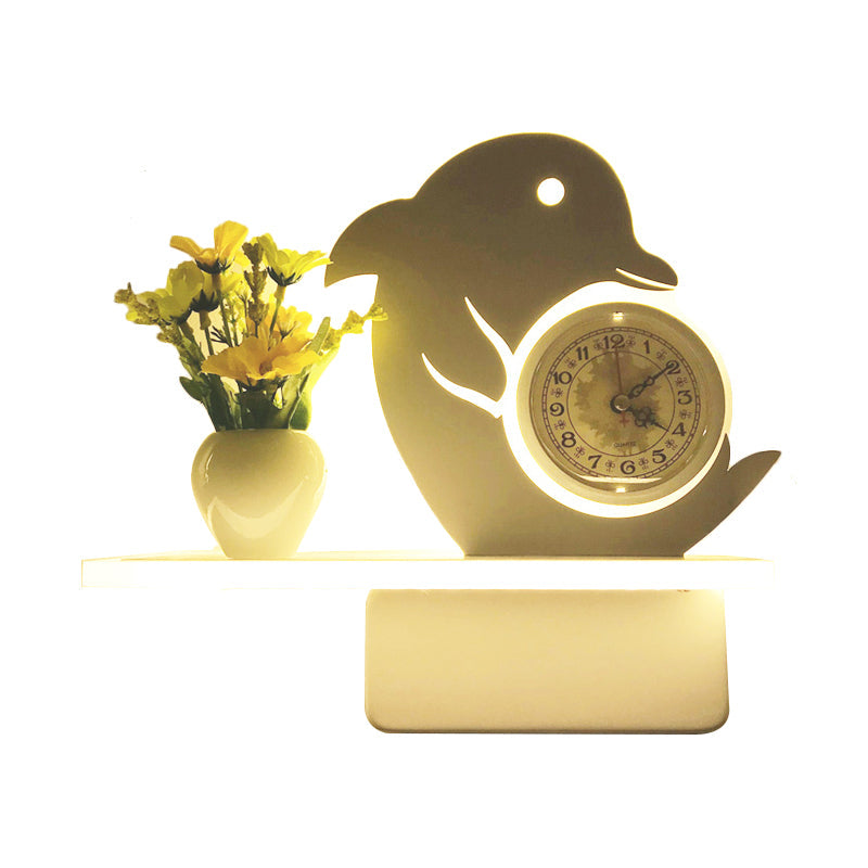 Modern Acrylic Wall Sconce With Shelf For Restaurant And Cafe - White Light / Dolphin