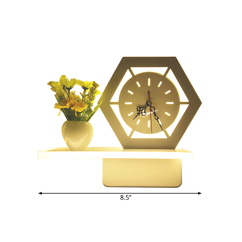 Modern Acrylic Wall Sconce With Shelf For Restaurant And Cafe - White Light / Clock
