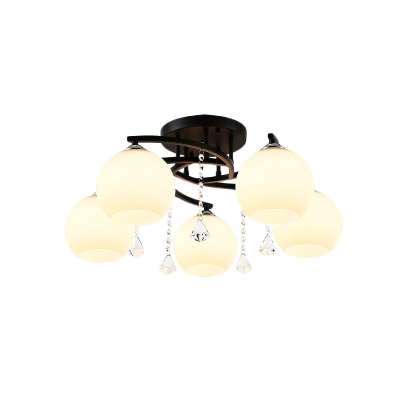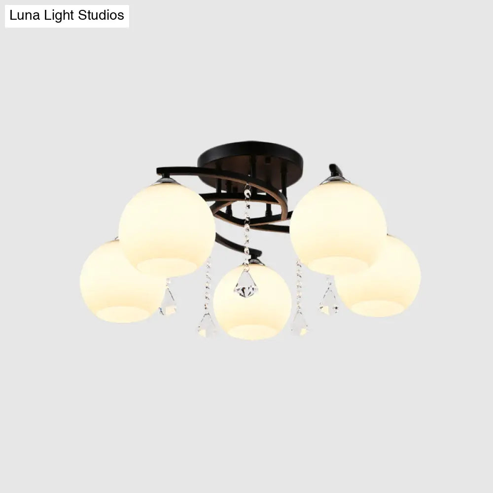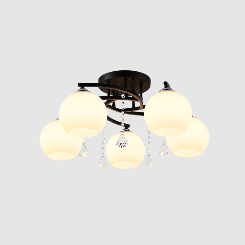 Moderne, halbrunde Kugellampe in Schwarz mit cremefarbenem Glas – 5-flammige, spiralförmige Deckenleuchte