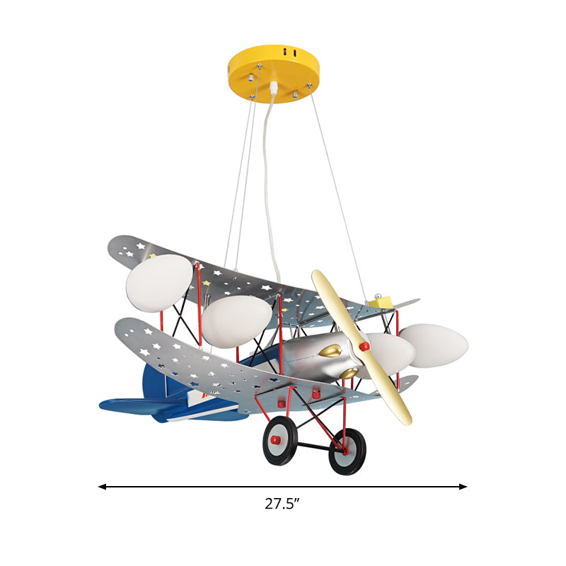 Dieser wunderschöne und stilvolle „Chic Plane Hängeleuchter aus Metall mit 4 Lichtern in Blau“ für Wohn- oder Kinderzimmer erhellt jedes Ambiente. Die 70 cm breite und 80 cm hohe Leuchte besticht durch ihr atemberaubendes Blau, das perfekt zu modernen und zeitgenössischen Einrichtungsstilen passt. Die runde Baldachinform und der weiße Milchglasschirm verteilen das Licht gleichmäßig im Raum. Das Metallgehäuse und die maximale Wattzahl der Glühbirne liegen bei 39 Watt oder weniger.