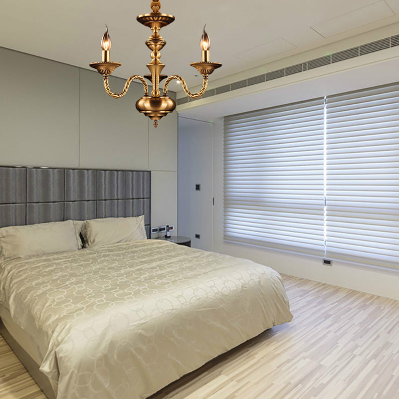 Messing Kolonial Kerzenleuchter Pendelleuchte mit gebogenem Hanfseilarm - 3/5/6 Lichter