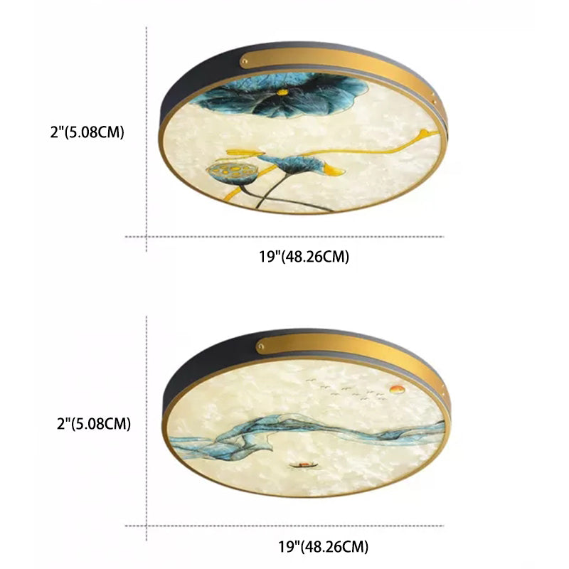 Artistic Hand-Painted Glass Flush Light: Minimalist Led Ceiling Lighting For Bedroom Brass / Lotus
