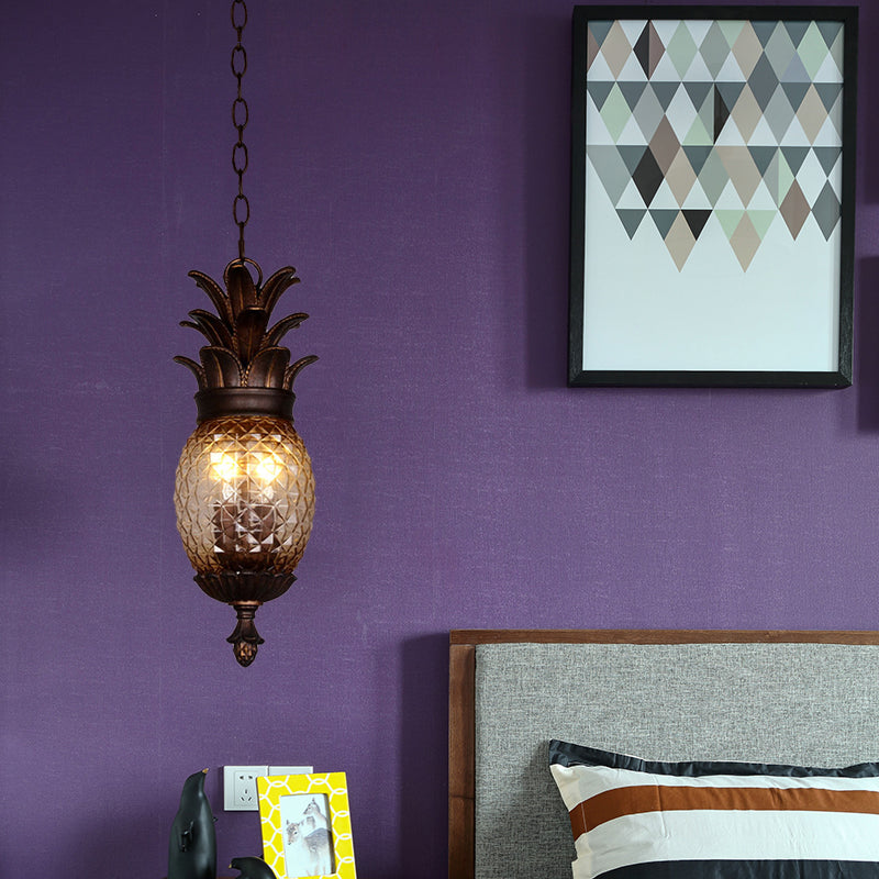 Klassischer Kronleuchter aus Klarglas mit Blasen – prismatische Pendelleuchte mit 2 Lichtern für die Balkonbeleuchtung