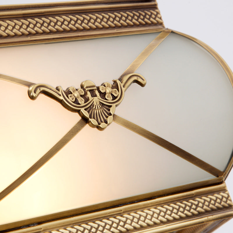 Colonial Satin Opal Glass 5-Light Brass Hexagon Pendant Chandelier For Dining Room