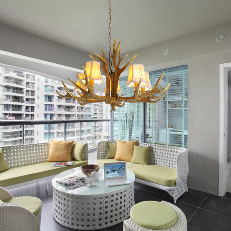 Traditional Resin Chandelier Pendant Light With Antler - Conical Shape Brown Finish 3/4/5 Bulbs