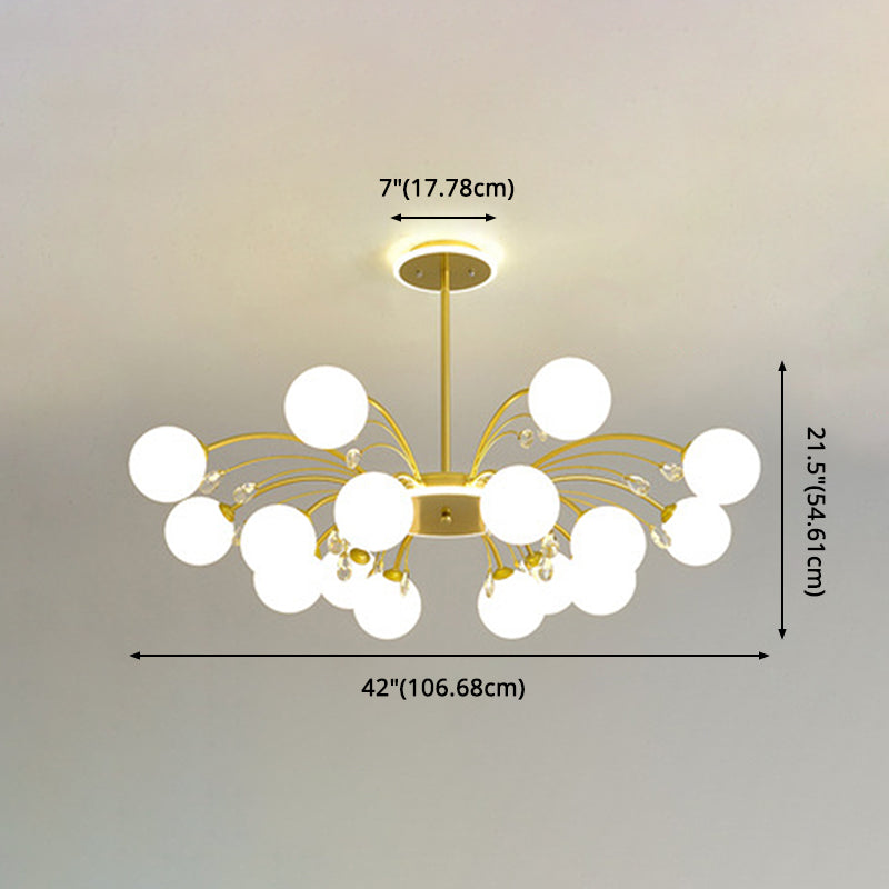 Modern Modo Chandelier With Opal Frosted Glass | Ceiling Hang Light For Sitting Room 16 / Gold Round