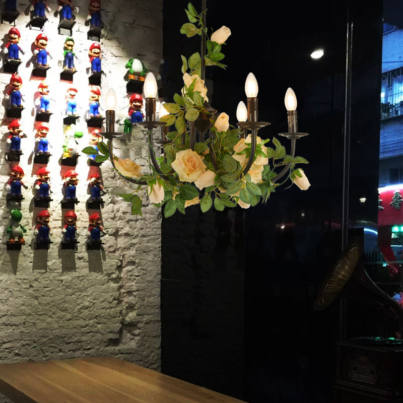 Black Iron Candlestick Chandelier Lamp - 6 Heads Pendant Light Fixture With Rose Decor Factory