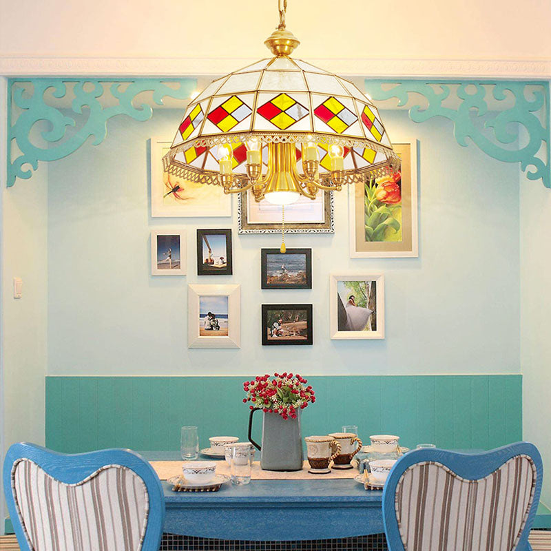 Kronleuchter-Anhänger aus Milchglas in Rot – 7-flammige Kolonial-Downlight-Lampe