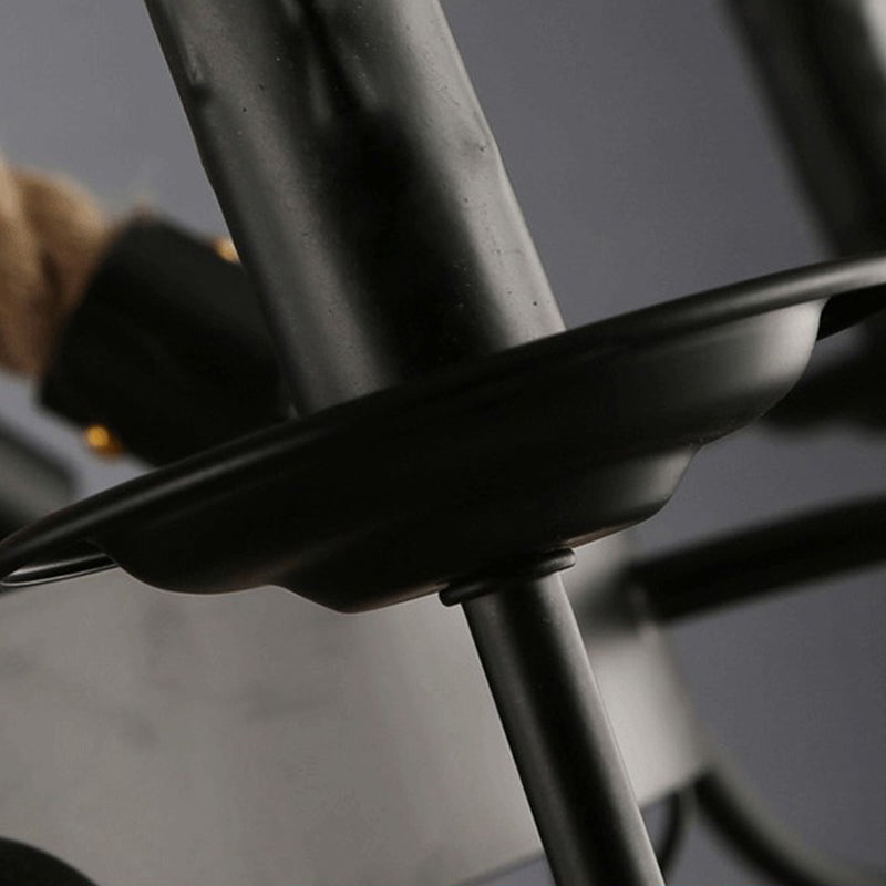 Loft Style Candelabrum Chandelier With 8 Bulbs And Hemp Rope - Black Hanging Lamp For Living Room 6
