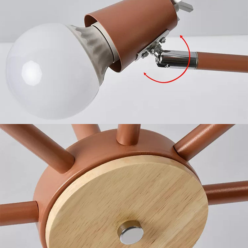 Macaron Sweet Cone Game Room Chandelier - Metal 8-Light Hanging Light With Antlers Red
