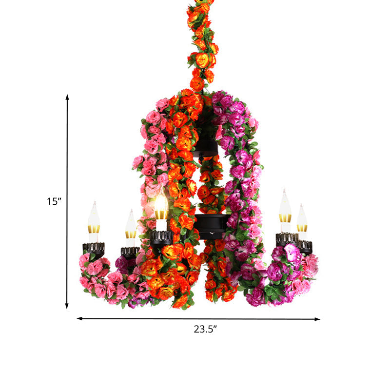 Black Iron Floral Warehouse Candle Chandelier - 6-Head Suspended Lighting Fixture