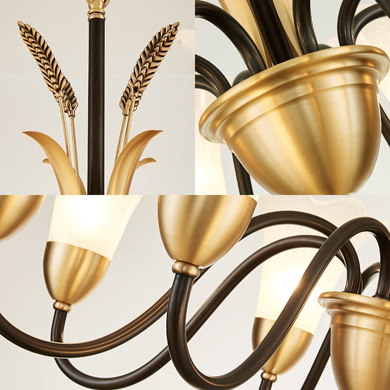 Kronleuchter aus weißem Glas in Blumenform – Traditionelle 6/8/12-flammige Deckenleuchte für Arbeitszimmer aus Messing