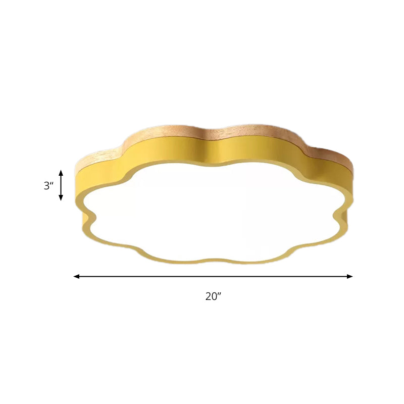 Kids Bedroom Wood Led Flush Mount Ceiling Light With Floral Shade Yellow / 16 Natural