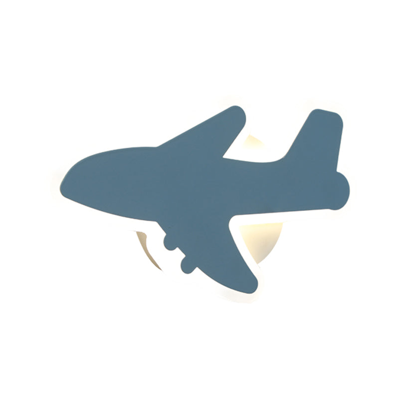 Cartoon Led Wall Sconce - Jet Kids Bedroom Flush Mount Lighting In White/Blue Blue / B