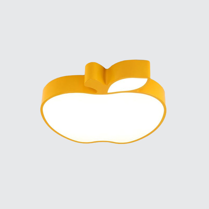 Colorful Kids Led Flush Mount Ceiling Lamp With Apple Design And Acrylic Shade Yellow