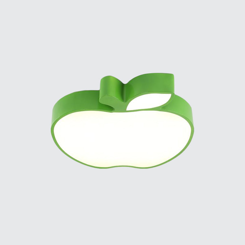 Colorful Kids Led Flush Mount Ceiling Lamp With Apple Design And Acrylic Shade Green