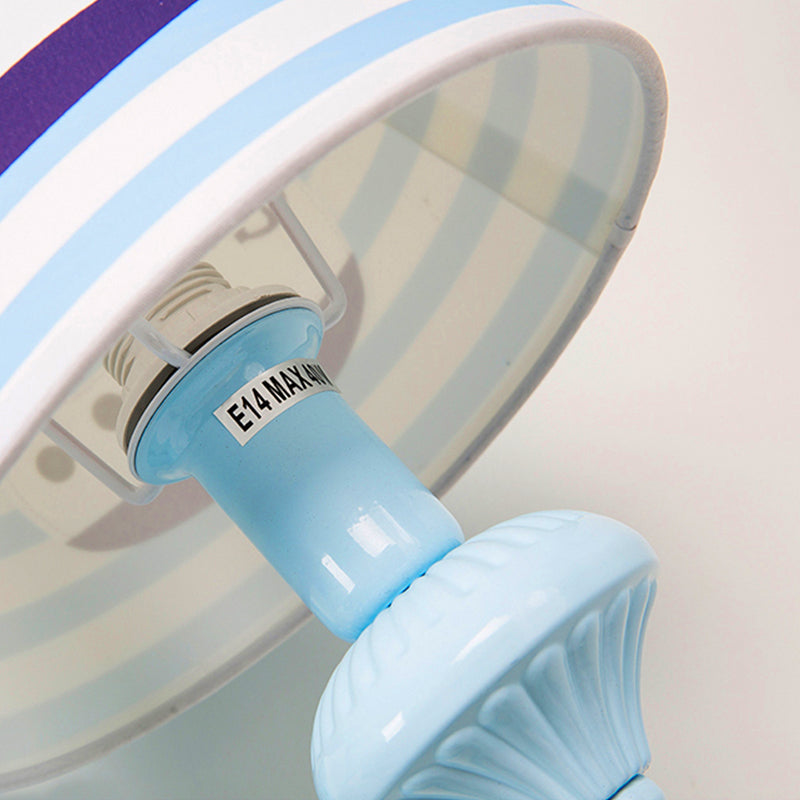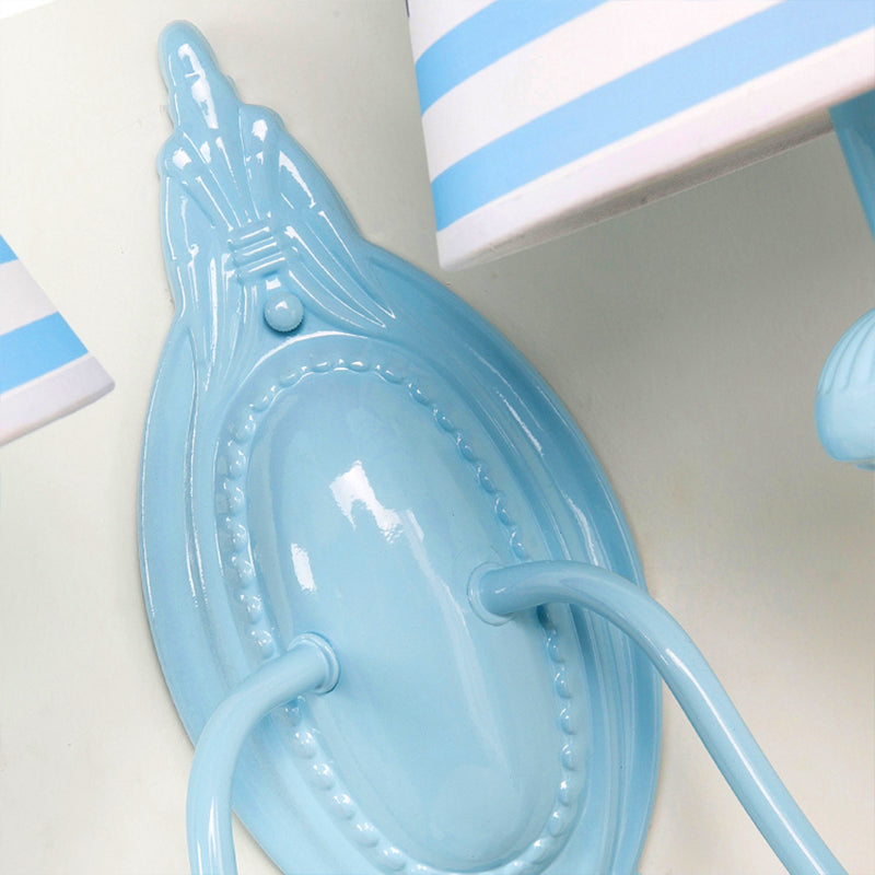 Blue Kids Wall Lamp With Tapered Shade For Study Room - 2 Heads Fabric & Metal Design / C