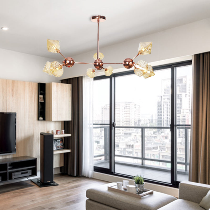 Diamond Farmhouse Chandelier Lamp - Amber/Clear Glass 3/9/12 Lights Hangs 13/27.5/34 Wide 9 / Amber
