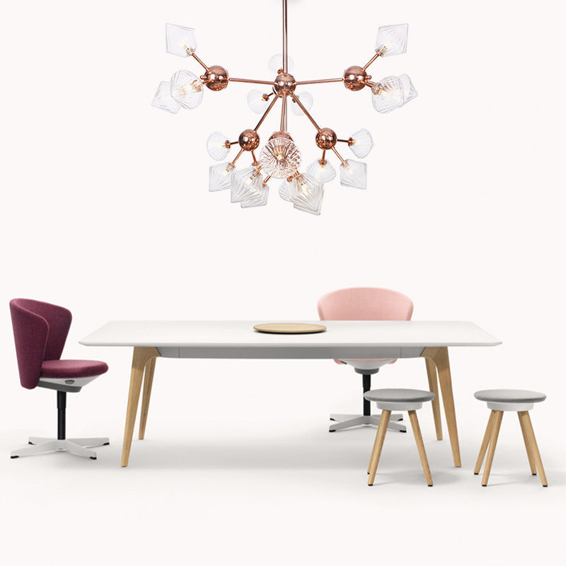Dieser Kronleuchter verleiht jedem Raum einen Hauch von Eleganz. Er verfügt über einen klaren Bernsteinglasschirm mit Metallrahmen im klassischen Industriestil. Der Kronleuchter wird mit einem 12,7 cm großen Baldachin und allen notwendigen Montageteilen geliefert. Er ist auch in 220 V-240 V erhältlich.