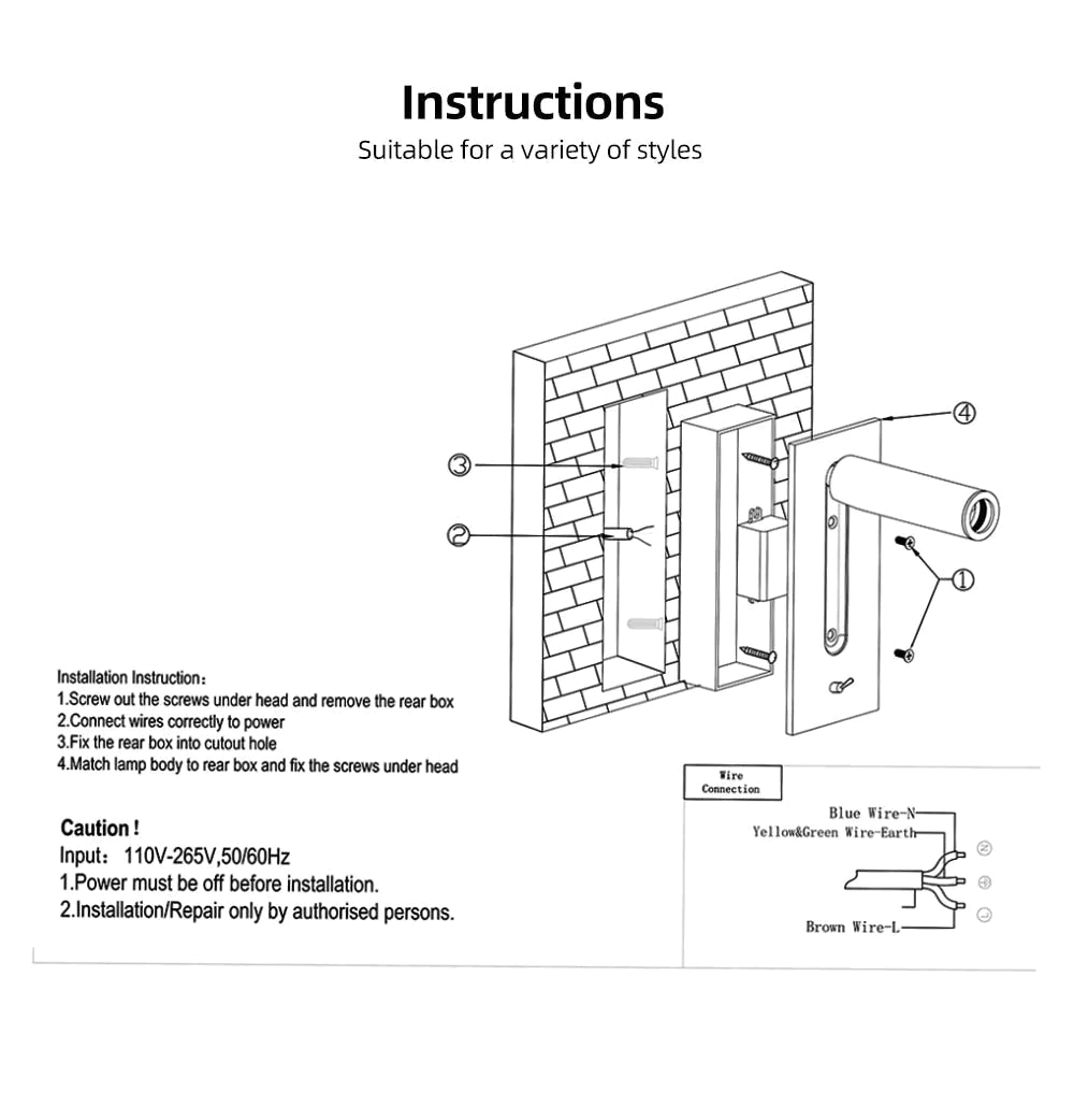 • Eingang: Fest verdrahtet AC100-240V 50-60Hz