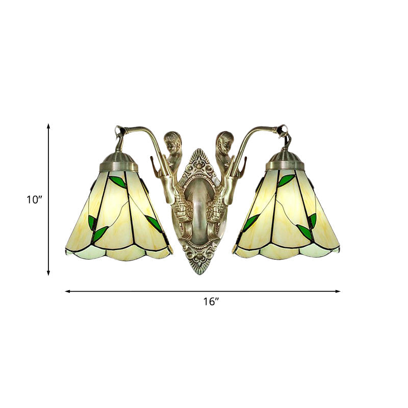 Konische Wandleuchte mit doppeltem Meerjungfrauenarm – Wandleuchte aus weiß/beigem Glas