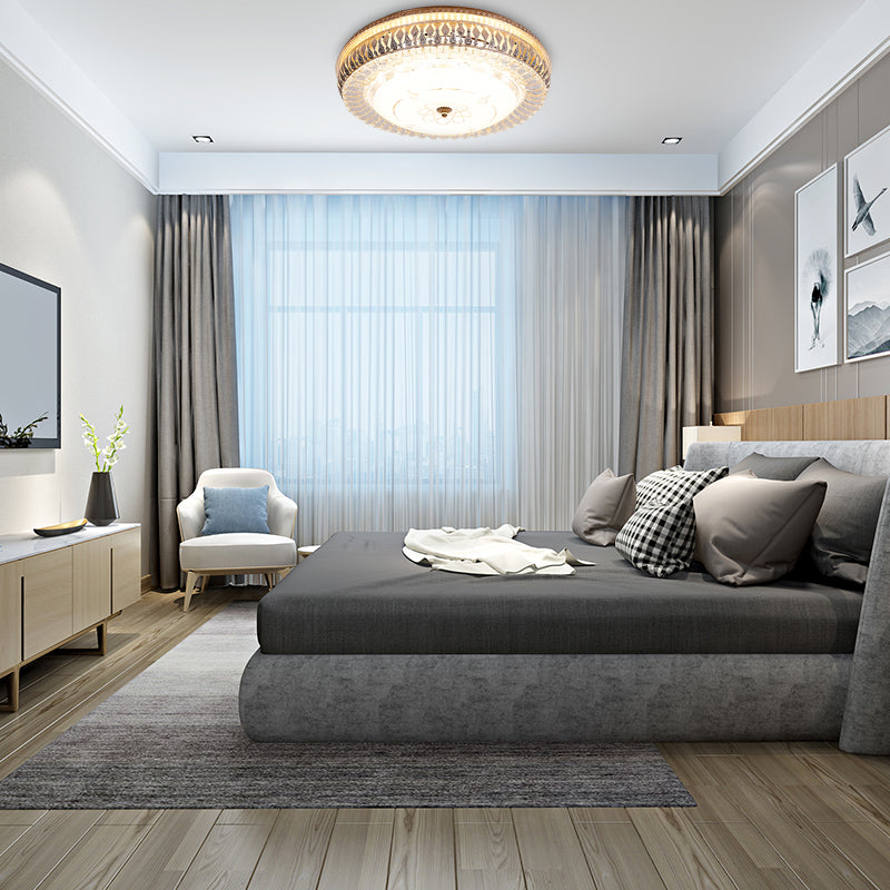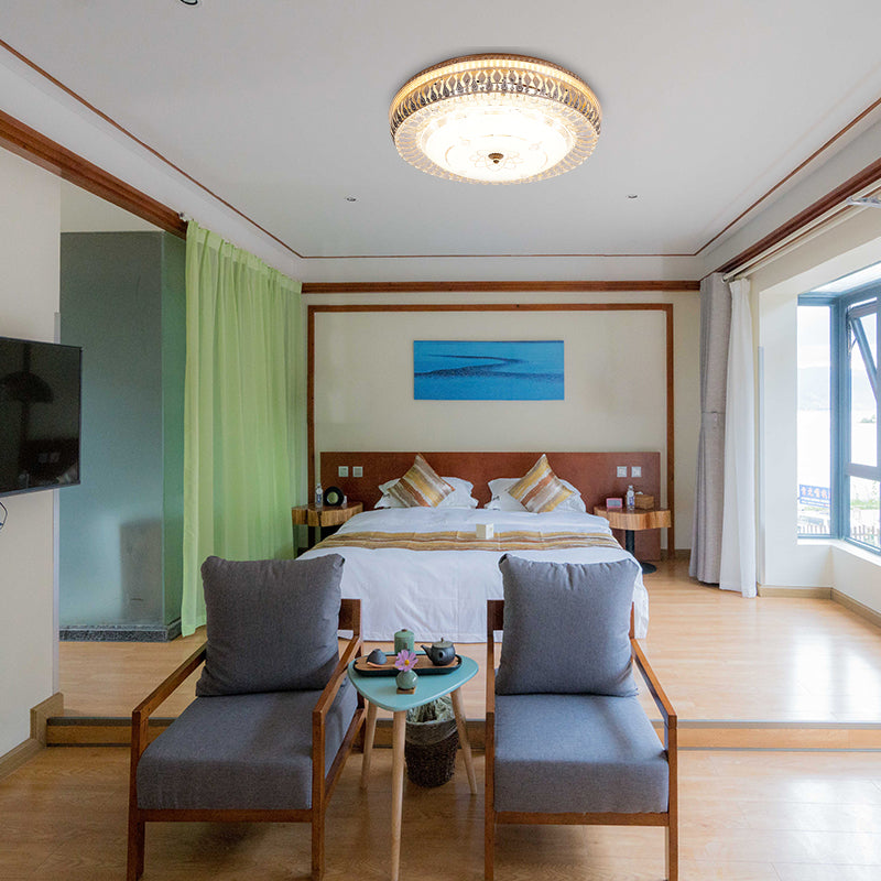 Vintage-LED-Deckenleuchte aus Messing mit Kristall-Einbaulampe und weißem Glasschirm – 16"/19,5"W Trommel