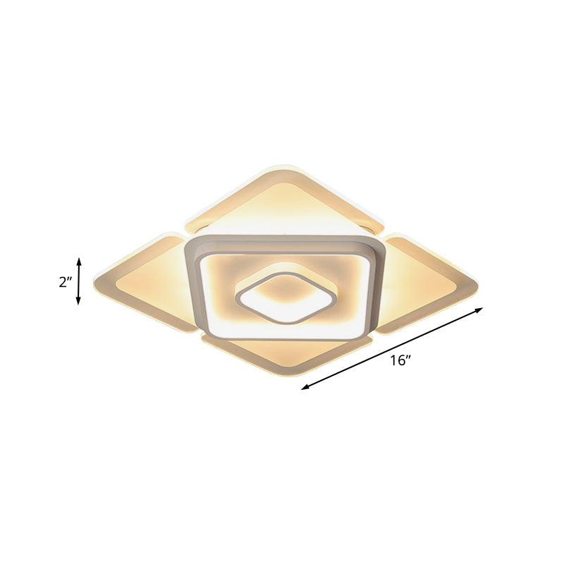 16/19.5 Led Flush Bedroom Lamp- Contemporary White Square Acrylic Shade In White/Warm Light / 16