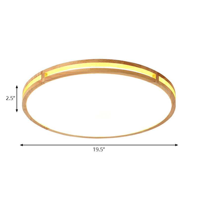 Wooden Round Flush Ceiling Lamp: 16’/19.5’ Wide Acrylic Simple Style Light For Dining Room Wood