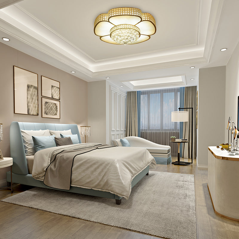 Modern Crystal Flower Ceiling Lamp - 16’/23.5’ W Flush Light In Gold