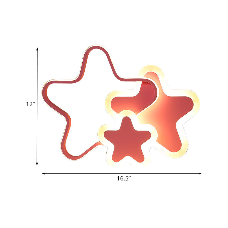 Girls Bedroom Led Pink Flushmount Ceiling Light - 16.5/20.5 W With Star Acrylic Shade