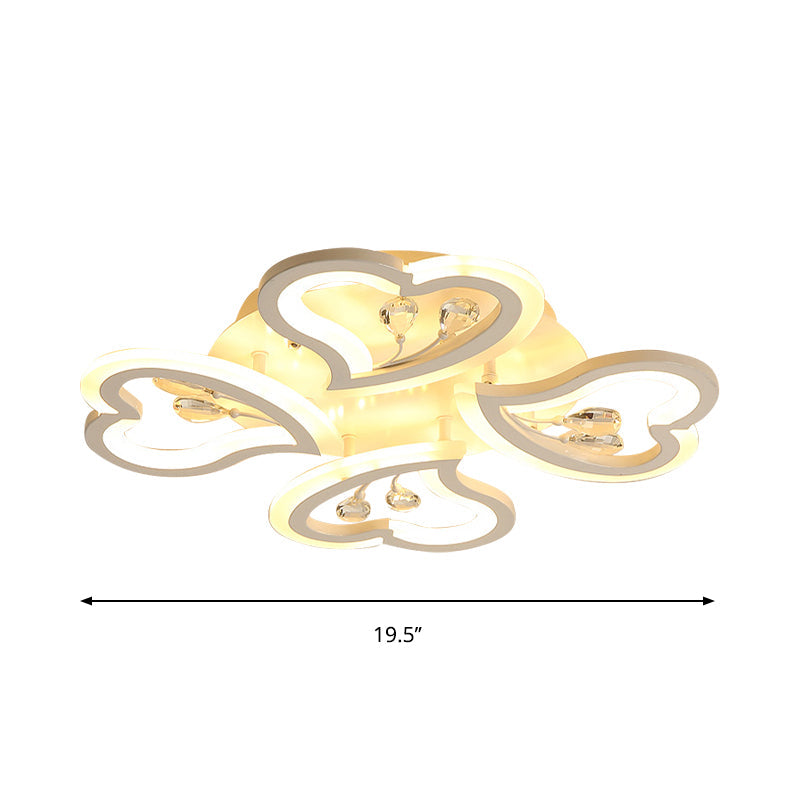 Weiße LED-Deckenleuchte aus Acryl in Herzform – Modernes, halbbündiges Licht mit Kristallakzent – ​​19,5"/23,5"/31,5" Breite – Warmweißes Licht