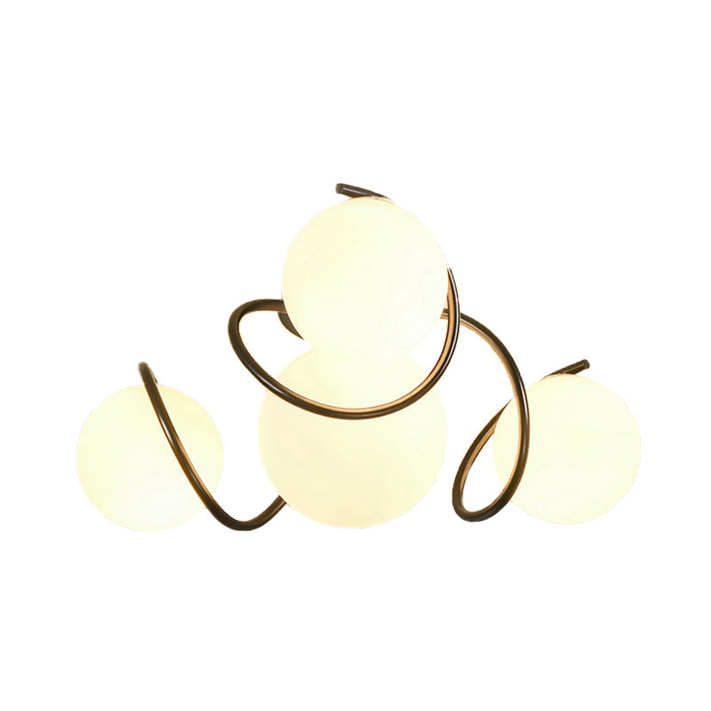 Orb Opal Glass Semi Flush Light - Traditional Black/White 4/7 Lights Living Room Ceiling Lighting