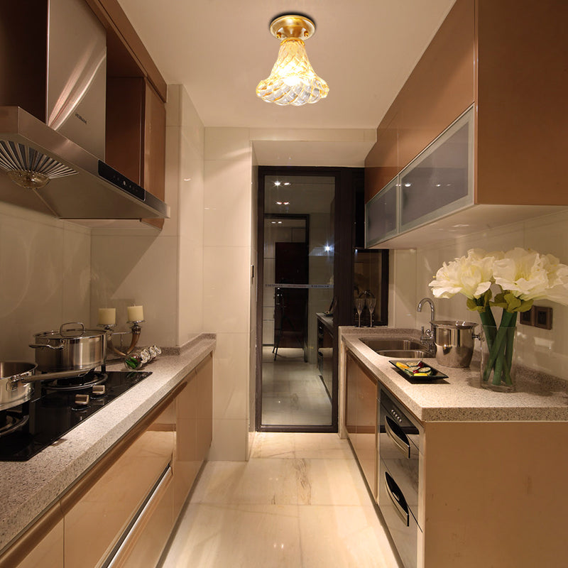 Deckenleuchte für Flur, Glocke/Schale, 16,5 cm/17,8 cm, Klarglas, 1 Glühbirne, Messing-Finish