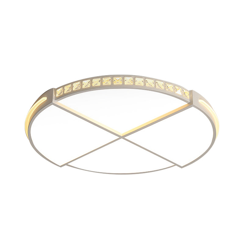 White Acrylic Cake Shape Ceiling Light With Crystal Deco - Bathroom Lamp Simple Style