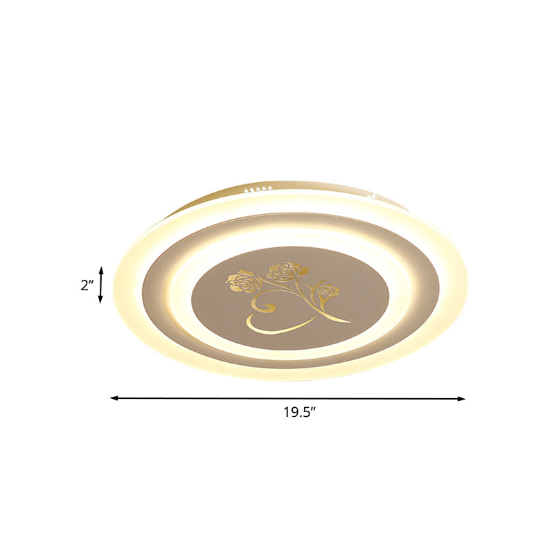 Modernist Acrylic Circle Flush Led Ceiling Light With Rose Pattern - White Mounted