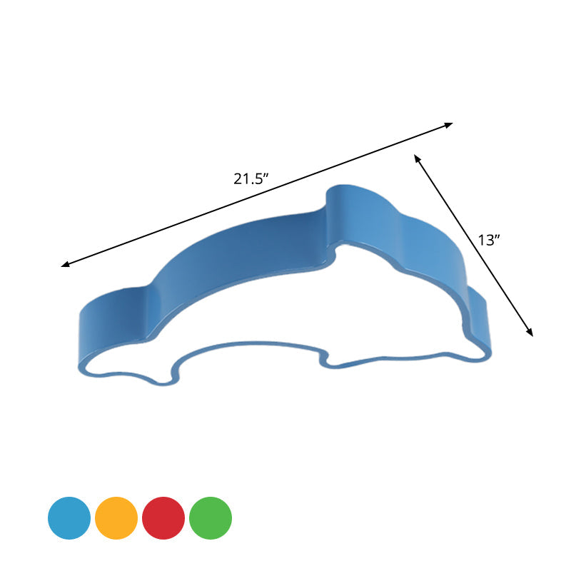 Cartoon Dolphin Led Flushmount Light For Childrens Room - Acrylic Ceiling Mounted Green/Blue/Red
