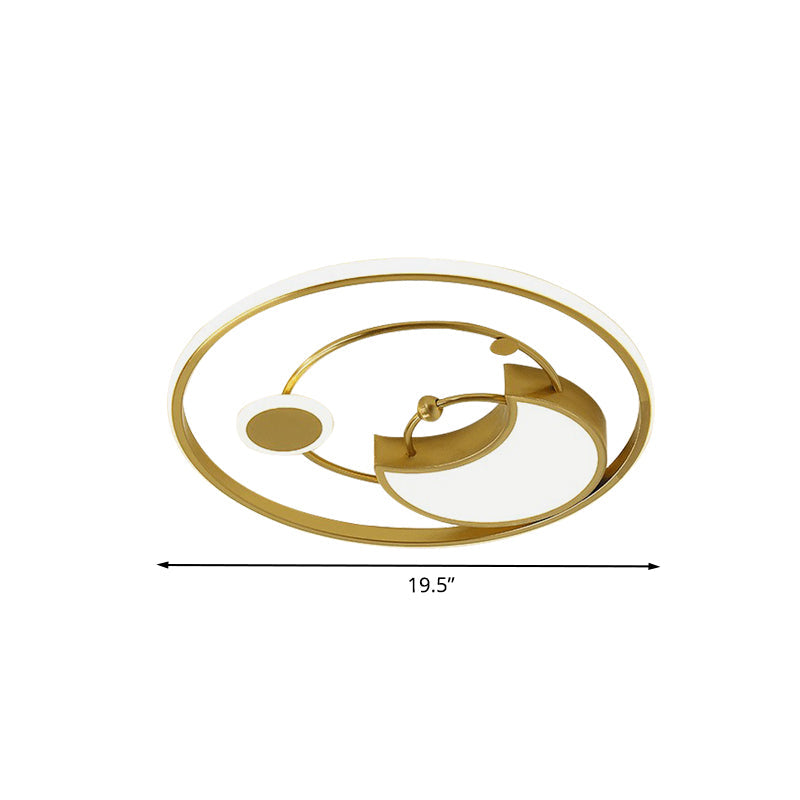 Nordic Style Acrylic Moon & Ring Led Flushmount Lamp - Gold Finish