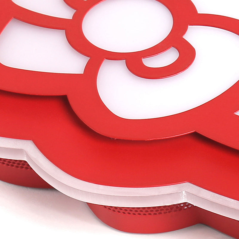 Cartoon Led Ceiling Lamp - Acrylic Peace Sign Kitty Mount Light For Baby Girls Room Red / 16’ Warm