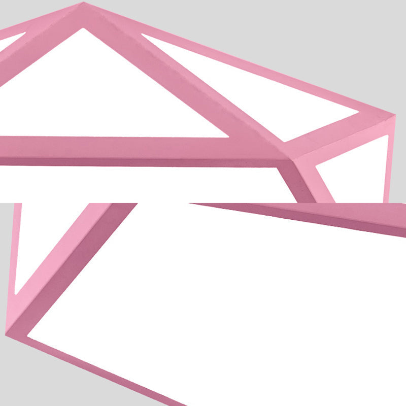 Kid Bedroom Macaron Acrylic Pentagon Ceiling Light With Metal Guard - Space-Saving Loft Mount Pink /