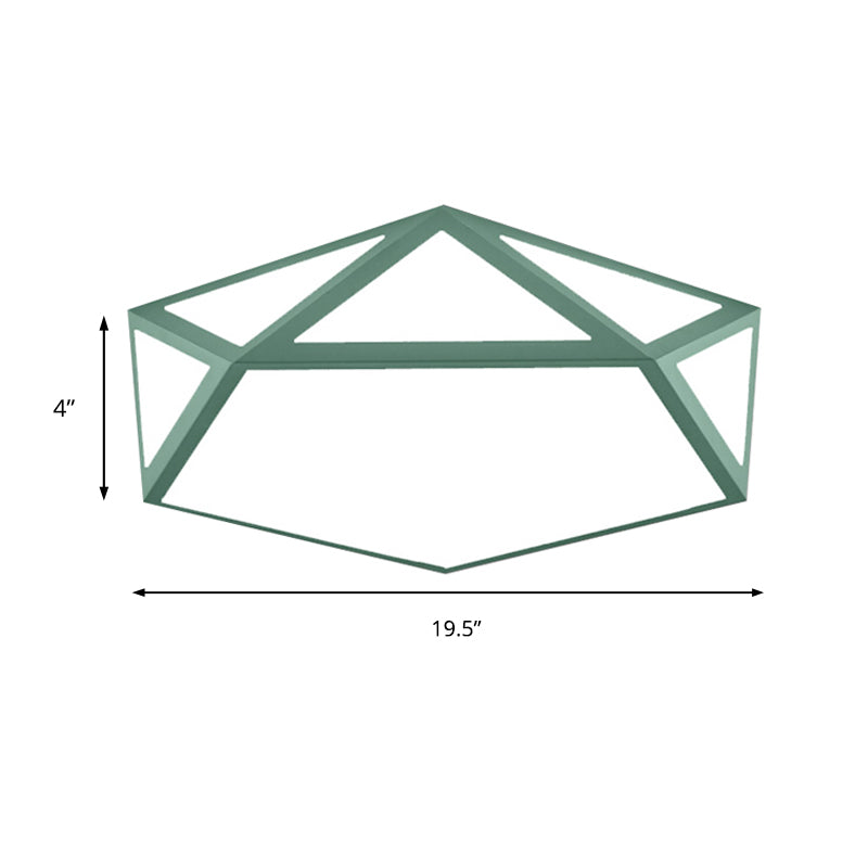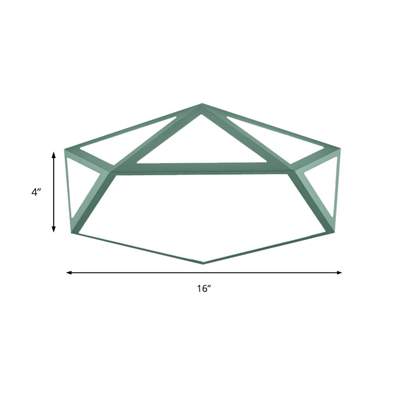 Kid Bedroom Macaron Acrylic Pentagon Ceiling Light With Metal Guard - Space-Saving Loft Mount Green