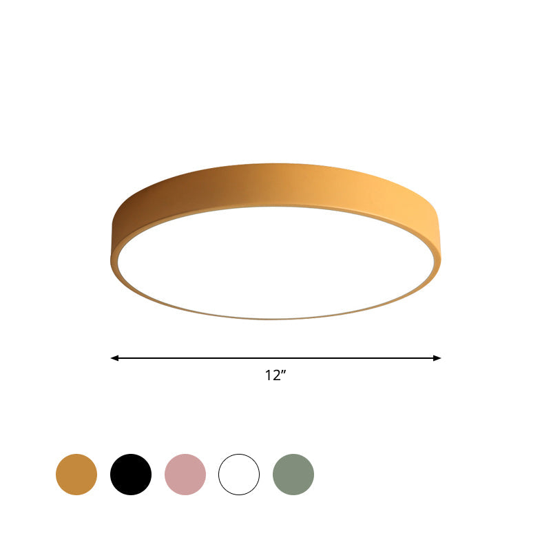 Modern Led Flush Mount Ceiling Light In Pink/Black/White With Acrylic Shade - 12/16 Diameter Yellow
