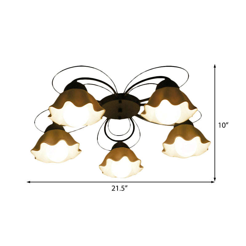 Traditional Black Ceiling Mount Light Fixture With Scalloped White Glass Ideal For Bedroom (3/5/6